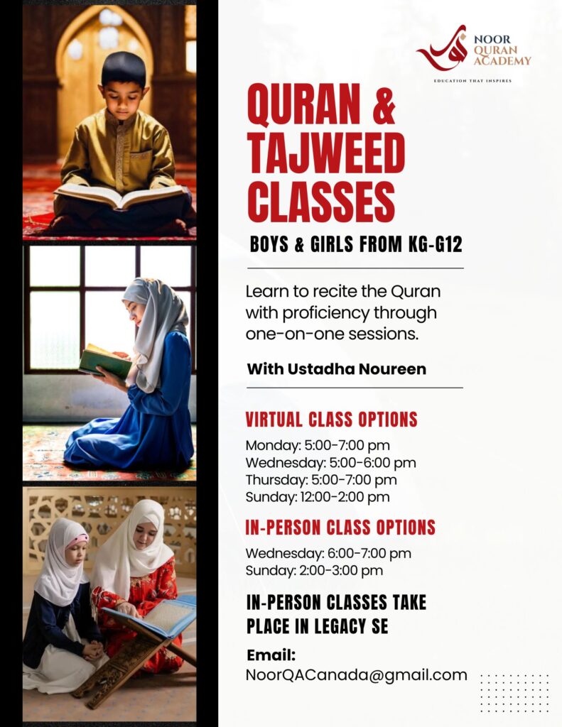 Noor Quran Academy offers Qur’an & Tajweed Classes for boys and girls from Kindergarten to Grade 12.